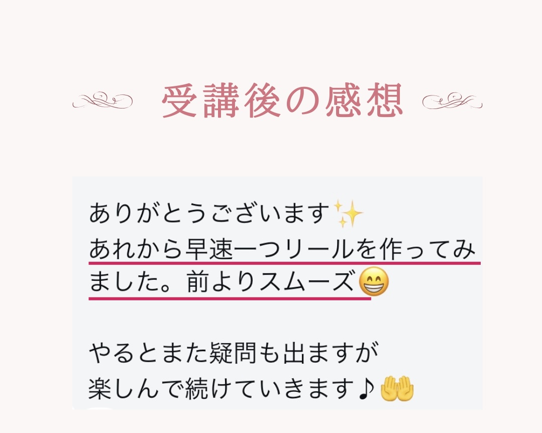 受講後の変化|リール作成がスムーズに!楽しく続けられるようになった!