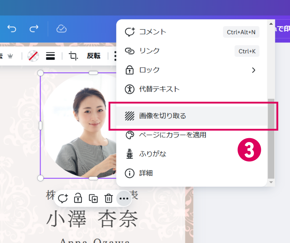 ❸ 「画像を切り取る」を押す