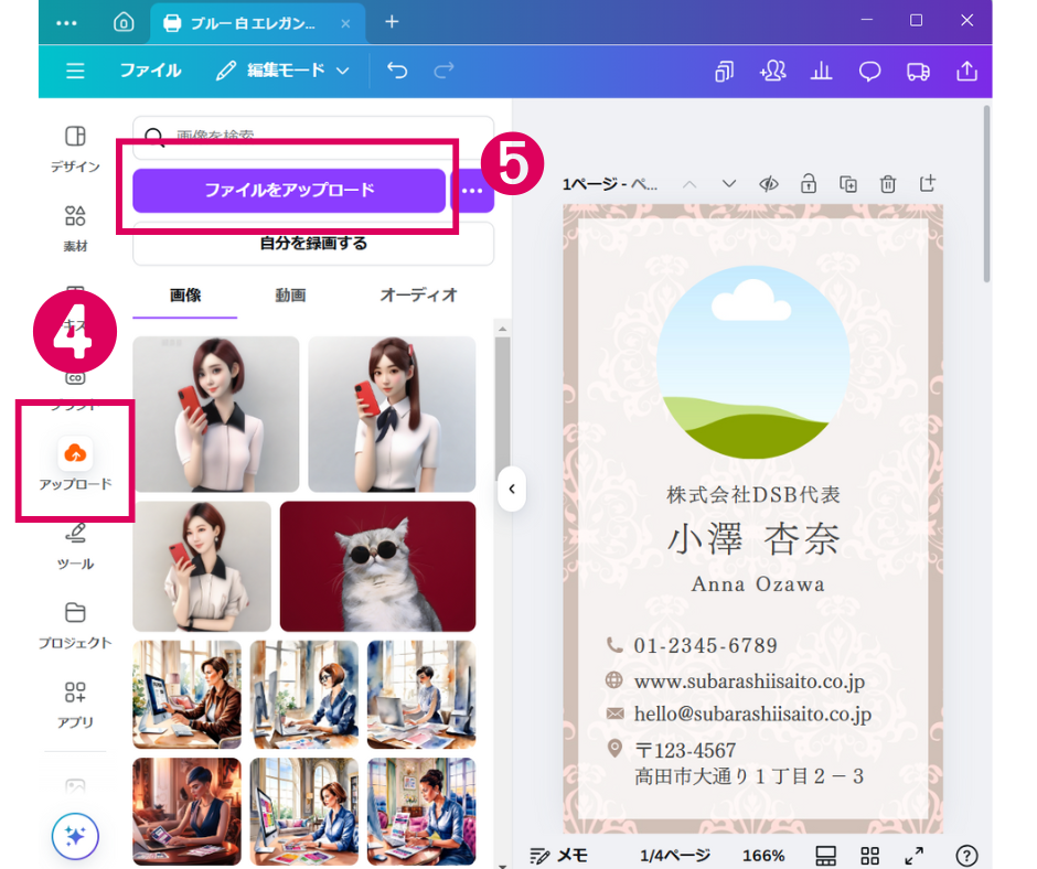 Canva(キャンバ)にログインし、作成したいデザインを開く。