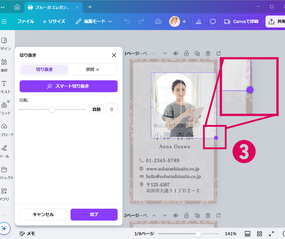 Canvaの切り抜き機能を使えば、簡単に写真枠(フレーム内)の中で写真のサイズや位置をバランスよく整えることができます。