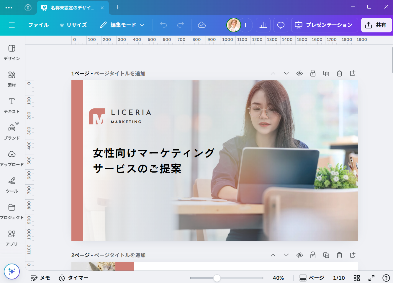 A:はい。テンプレートとブランドキットで整った資料がすぐに完成します。