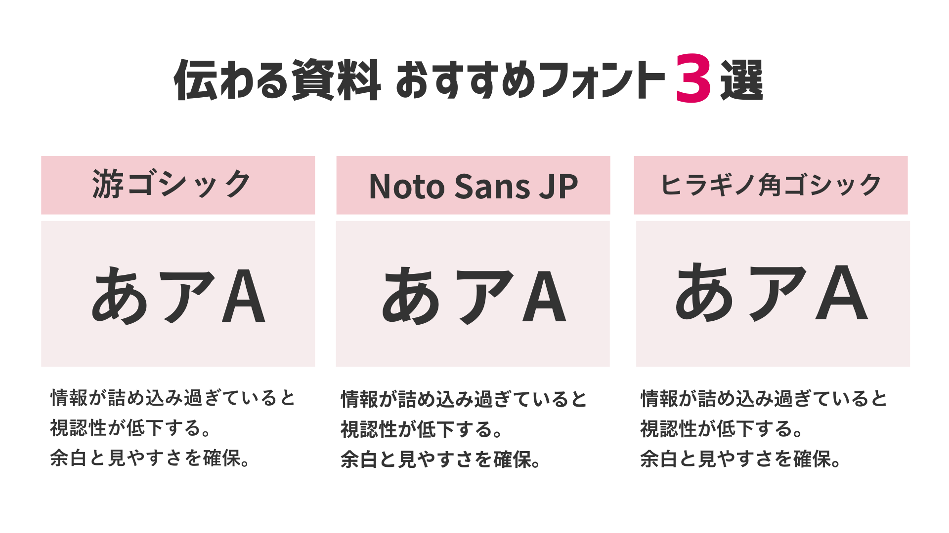 「游ゴシック」「Noto Sans JP」「メイリオ」