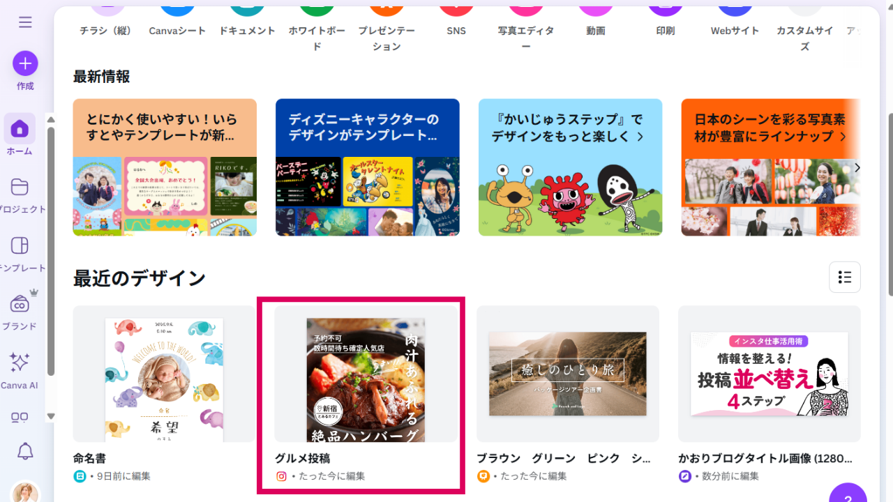 Canvaには、デザインや素材を探す時間を