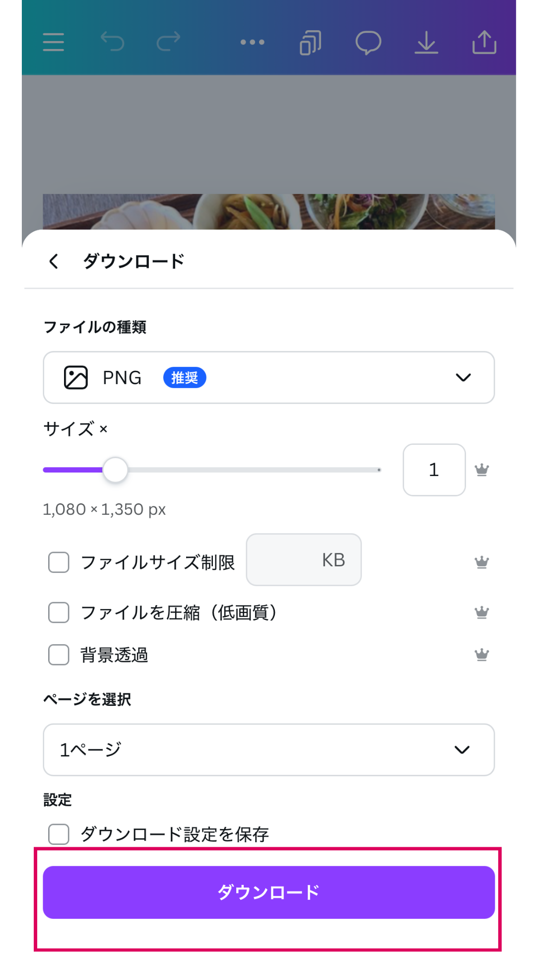 完成したら、右上の「共有」→「ダウンロード」からPNG形式で保存すればすぐに投稿可能です。