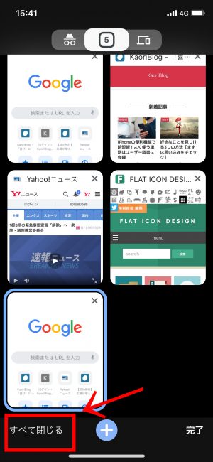 iPhoneのSafariやChromeで開いている複数のタブを1個ずつ消すのは時間がかかるなぁ。一気に複数タブを終了できる方法ないのかな…?