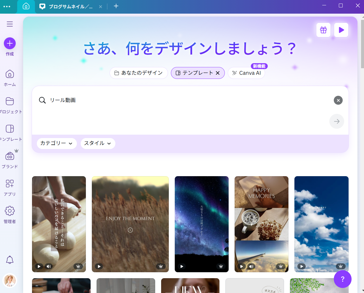 「CanvaにあるInstagramリール動画のテンプレートを使って、写真や文字を変えるだけのシンプルなリールならCanvaはおすすめです。」