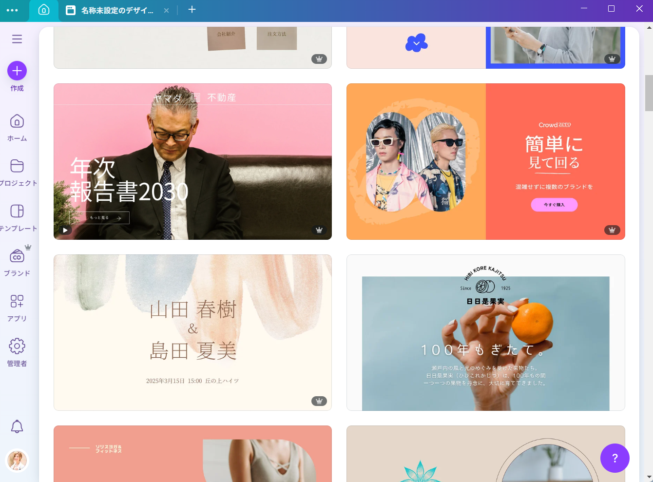 Canvaの中には豊富なWEBサイトのテンプレートがあります。